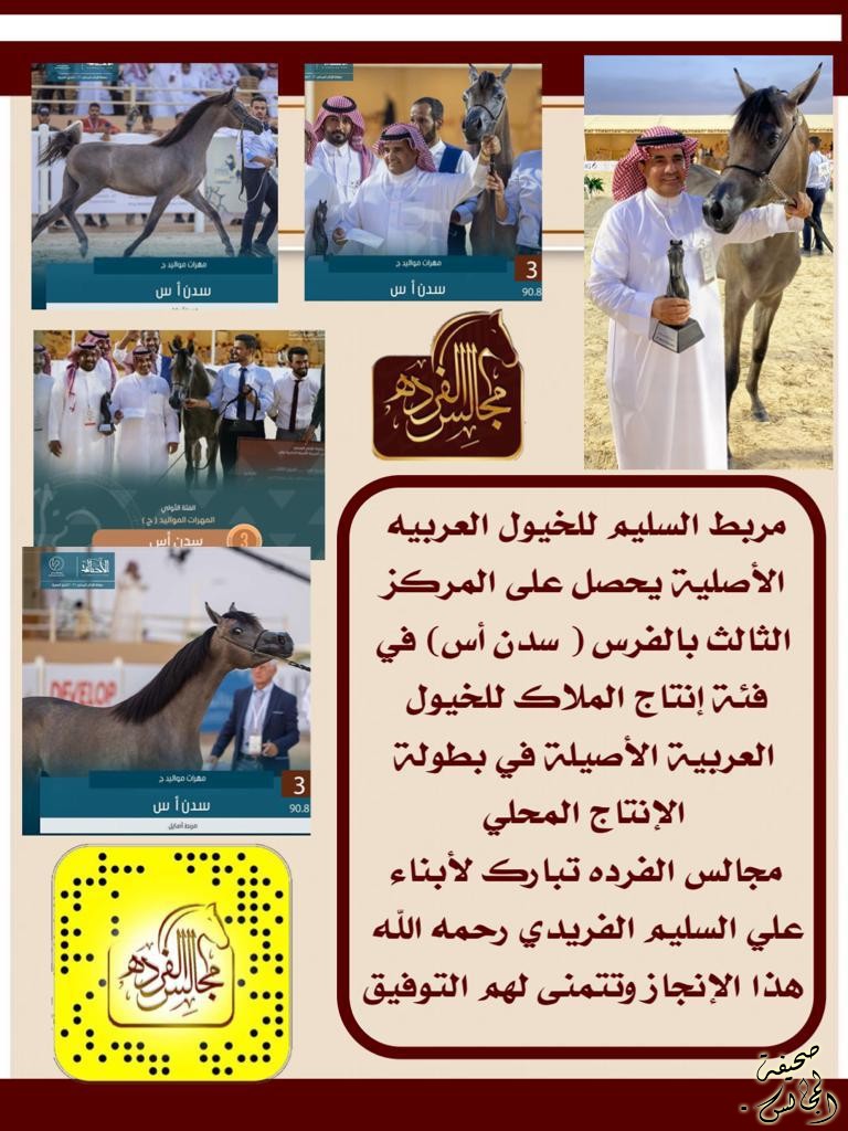 مربط السليم للخيول العربيه الأصلية يحصل على المركز الثالث بالفرس سدن اس